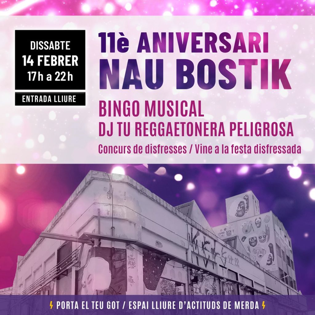 Dissabte 14 de febrer celebrem l’aniversari carnavalero de la Nau Bostik, vine a ballar i gaudir dels 11 anys de vida.