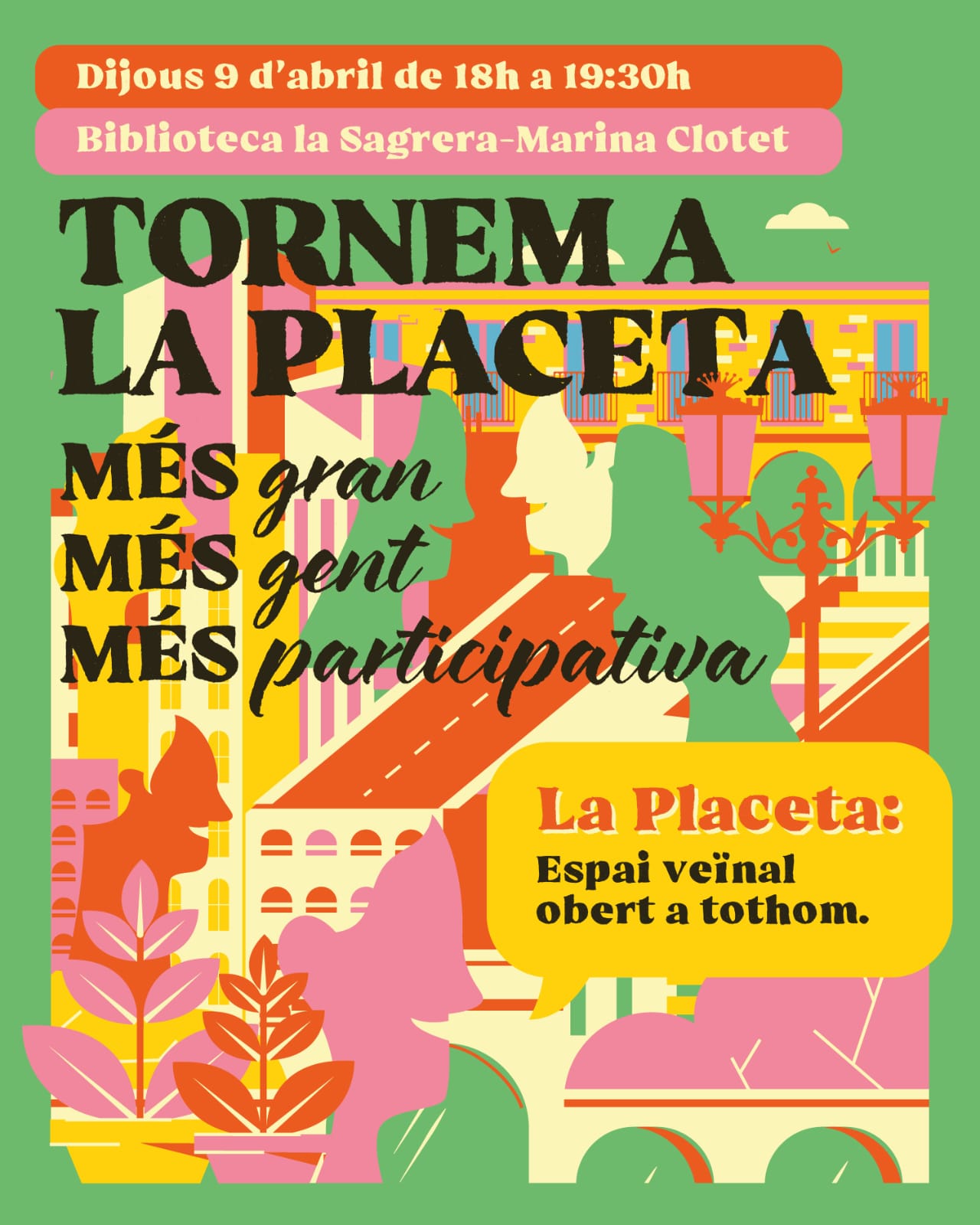 “La Placeta” és un espai de trobada obert per compartir idees, projectes i inquietuds sobre el barri de la Sagrera. Una oportunitat per conèixer iniciatives locals i participar activament en la vida comunitària.