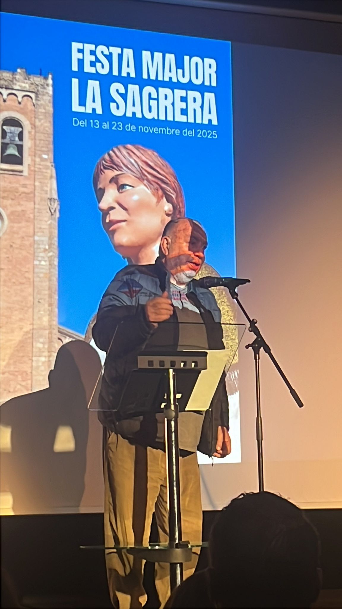 Durant l’acte d’inici, també es va lliurar una placa a Pol Rivas Torres, autor de la fotografia del cartell d’aquest any, on apareix la geganta de La Sagrerina amb l’església de Crist Rei al fons. Pol ens va explicar que, en aquesta imatge, ha volgut fusionar les seves dues grans passions: la fotografia i la cultura popular.