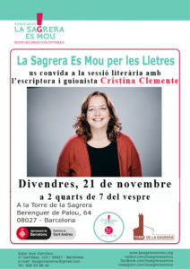 L’Associació La Sagrera Es Mou impulsa una nova edició del cicle La Sagrera Es Mou per les Lletres, que aquest novembre comptarà amb la participació de l’escriptora i guionista Cristina Clemente, una de les veus més destacades de la dramatúrgia catalana contemporània.