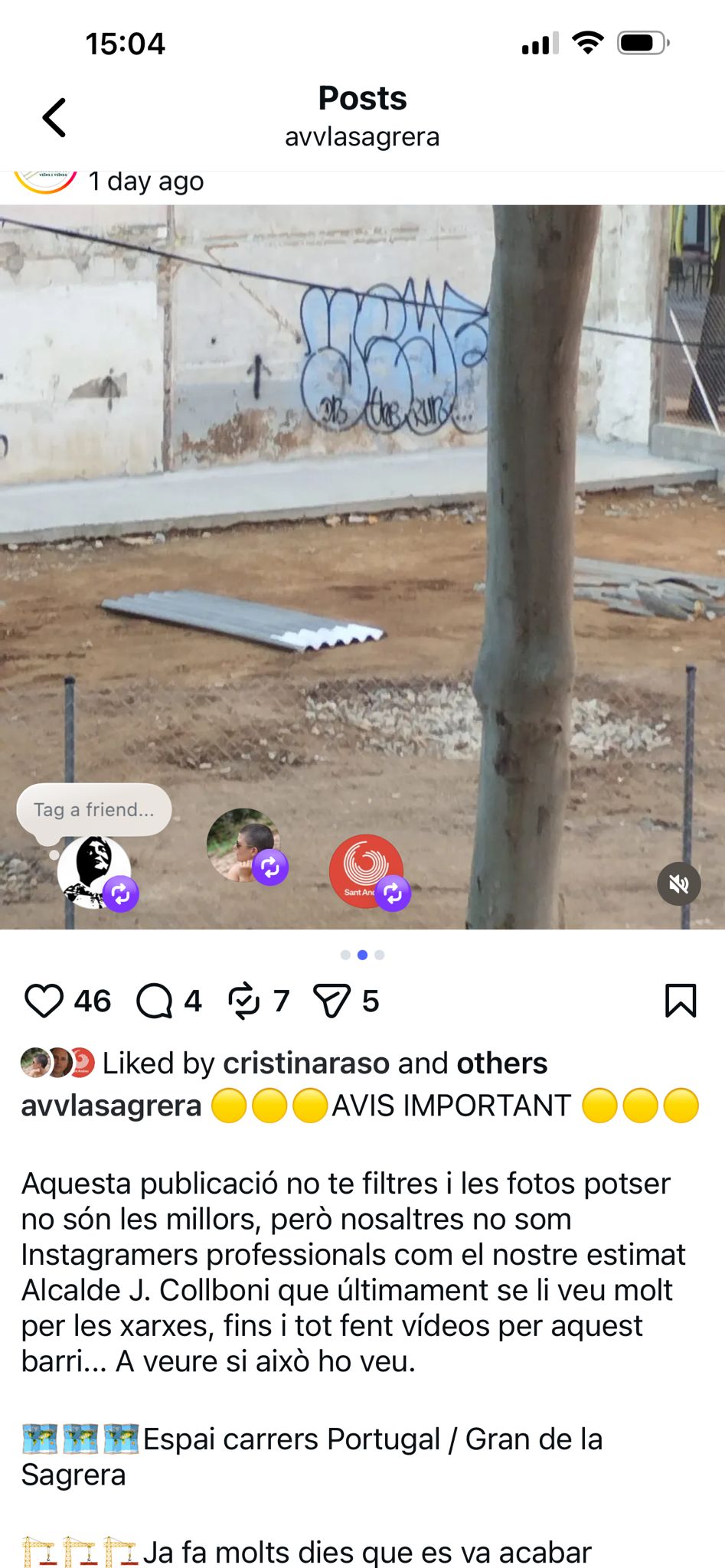 L’associació insisteix que fa temps que reclama la retirada integral de l’amiant del barri i adverteix del perill que suposen els milers de metres quadrats de fibrociment encara existents, com els aproximadament 7.000 m² vinculats a l’antiga Bostik o els 1.000 m² de l’aparcament de Mossèn Juliana.