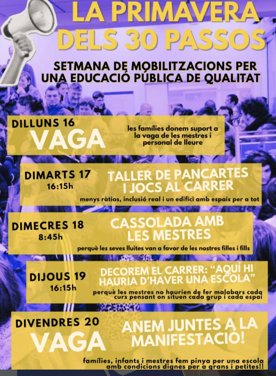17 març Setmana de mobilització educativa a l’Escola 30 Passes