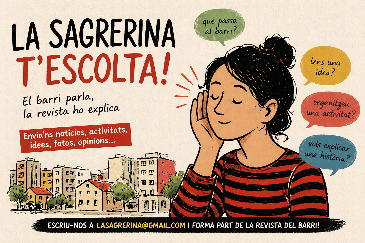 A La Sagrerina volem escoltar-te. Tens alguna cosa a dir? Una activitat, una idea, una història o una reivindicació? Aquest espai també és teu.